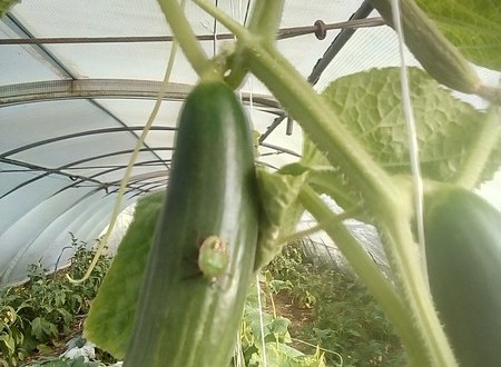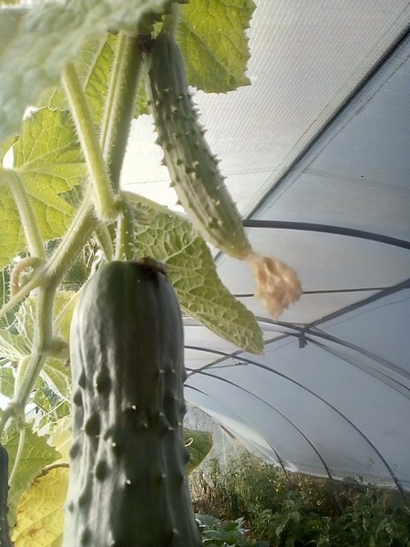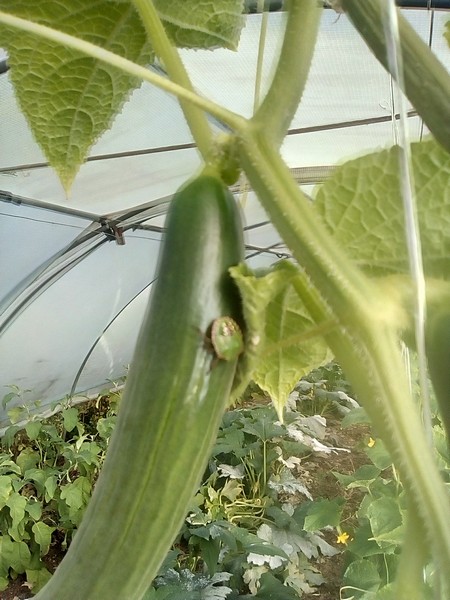 Perchée sur un concombre, en voici une petite verte qui me nargue.