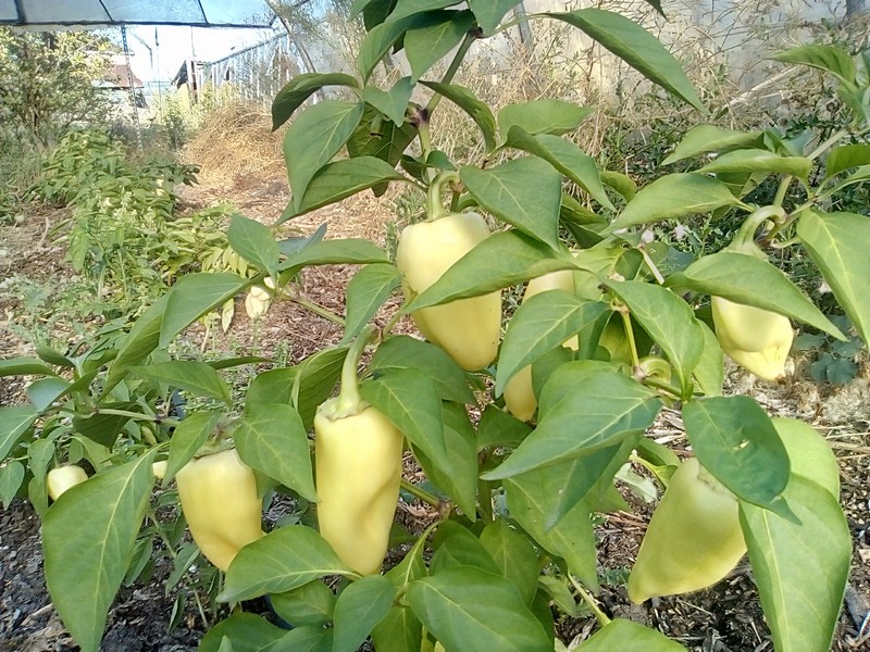 Les poivrons, Solanacées encore, sont arrivés tard cette année. Ils dureront tant que les jours ne seront pas trop courts.