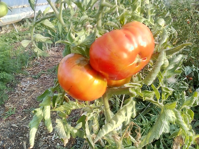 Vient ensuite la tomate, reine de la belle saison, une Solanacée. Les plants sont encore bien garnis et devraient produire encore pendant un mois environ.