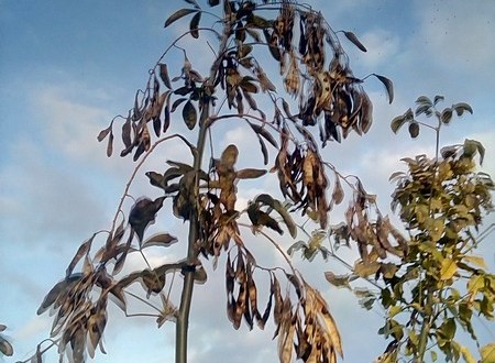 Elles ont laissé la place à des gousses qui s’ouvrent en séchant. C’est le moment de récolter des graines.