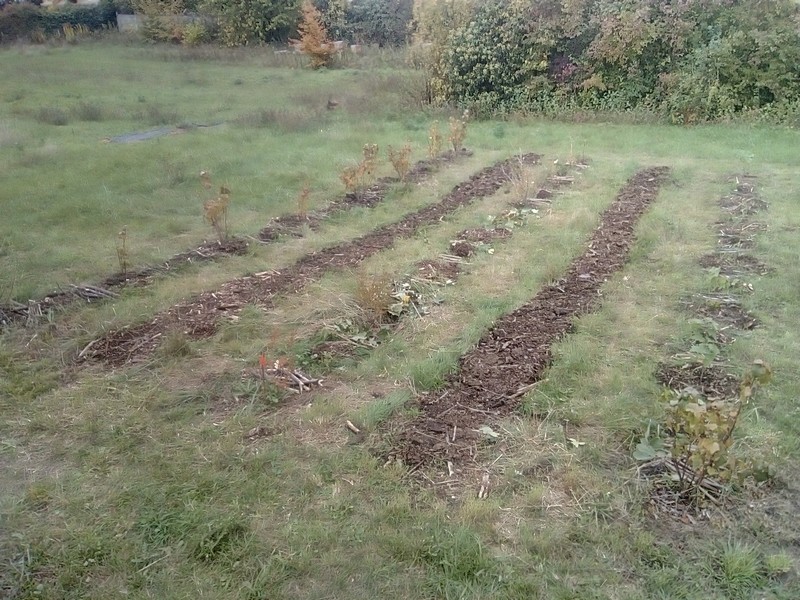 Je commence dès à présent dans un carré de petits fruits, cassis et groseille. Entre chaque plant est installée une place de production de biomasse par semis et bouture. Des graines récoltées dans le parc donnent largement de quoi semer. Et je dispose de petits arbres pleins de bonne volonté (saules, sureaux…) pour fournir les boutures.