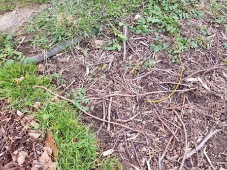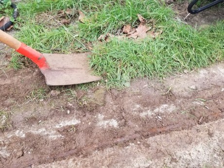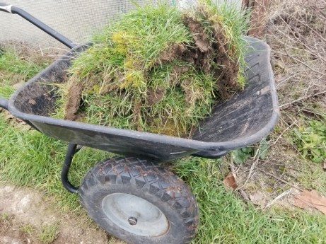 Vite fait bien fait, le chemin central sera plus facilement « roulable » avec les chariots et les creux du terrain sont comblés petit à petit.