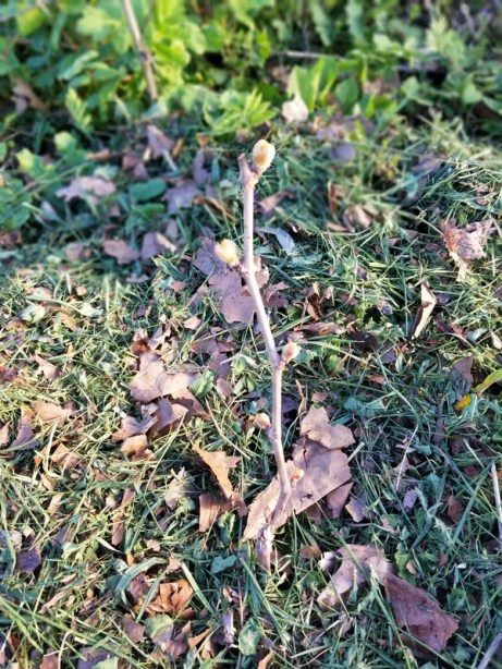 Là une petite bouture de vigne, dont les bourgeons sont presque ouverts.