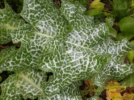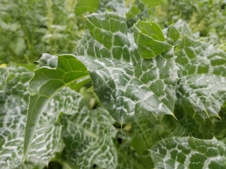 Quelques années en arrière, voulant savoir à quoi cela ressemblait, j’ai semé quelques graines de chardon-Marie à l’arrière des serres. Les plantes se sont ressemées autour, puis… ont disparu.