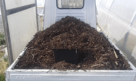 Son dernier chargement aura été du compost fin pour les semis de carottes.