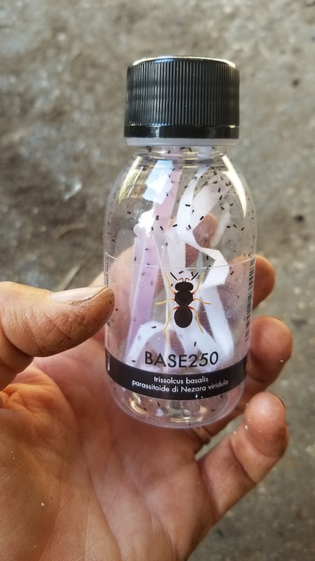 Trissolcus basalis, une petite guêpe capable de pister une punaise prête à pondre et de parasiter ses oeufs.