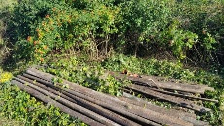 Les jardins d’annuelles mobilisent l’essentiel des soins, certes, mais les abords réclament aussi un peu d’entretien. En particulier certains recoins, hors d’atteinte de la tondeuse, comme cet espace entre un tas de poteaux et la clôture.