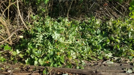Ma technique n’est pas des plus rapides mais son résultat est net. Je découpe patiemment chaque branche au sécateur en tronçons de 10-15cm. Cela permet de remplacer une véritable jungle en un tapis épais de Bois Raméal Fragmenté. Le sol est protégé, donc les souches ne rejetteront pas trop vite, et la matière se décomposera ni trop vite ni trop lentement.