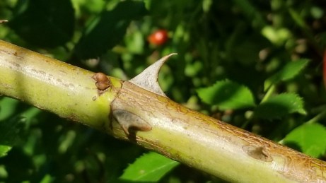 et qui est armé de redoutables épines courbes, de celles qui ne lâchent jamais. Pas d’alternative, on doit repartir dans l’autre sens quand l’habit est harponné par de telles épines.