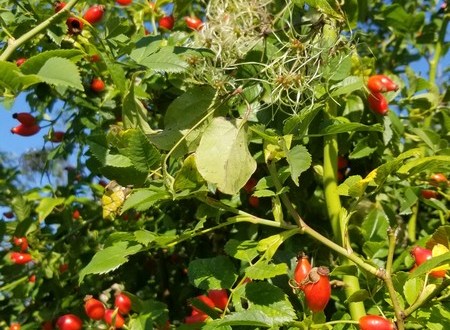 et quelques pieds d’églantier. Vous savez, ce rosier sauvage qui porte les cynorhodons…