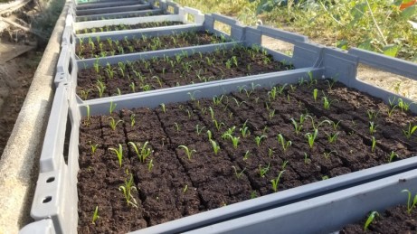 Quant aux épinards, encore une de ces plantes capables de résister au gel, ils sont encore en pépinière. Les premiers cotylédons sont apparus. Ils devraient pouvoir être plantés à la fin du mois.