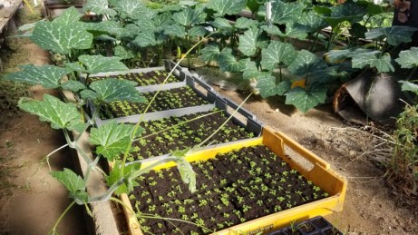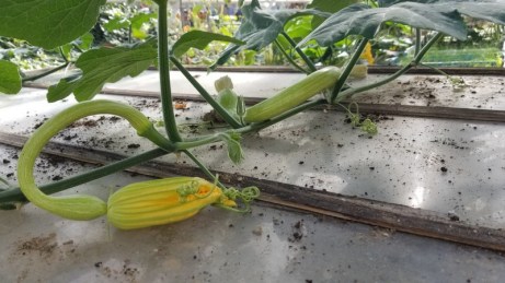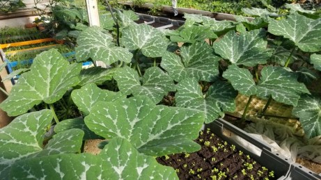 Au printemps, la préparation des plants de courges a été un peu large. Quelques plants surnuméraires n’ont jamais quitté la serre à plants.