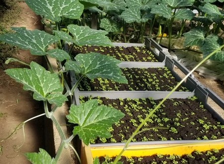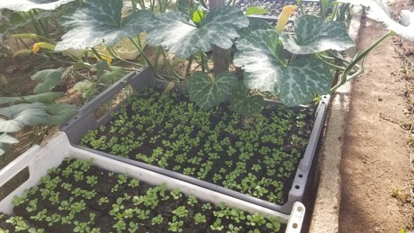 Ce sont les grandes feuilles de courge qui ont encaissé les ardeurs du soleil, créant une ambiance tempérée pour les jeunes semis.