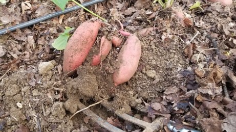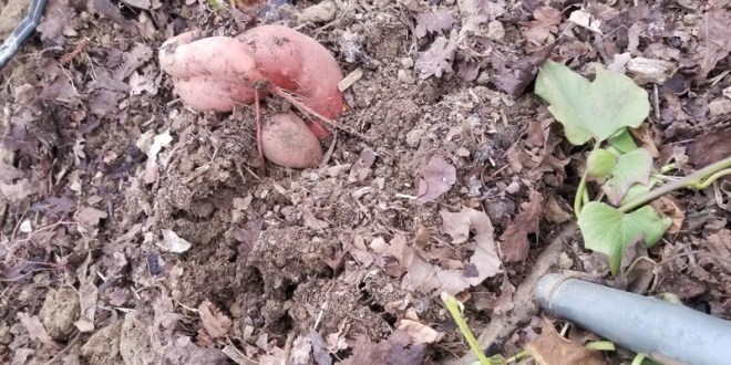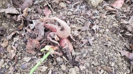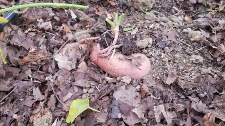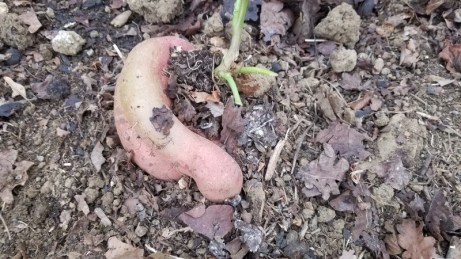 Le moment est venu de couper la masse de feuilles et de soulever ce qui a pu se former sous terre. Suspense !