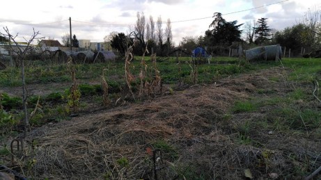 Une bordure est créée de part et d’autre avec des plants de trèfle, mélisse et consoude. Le chantier se finit à la nuit par un épandage de broyat sur toute la surface. Un grand merci à Josiane et Marie Pierre !