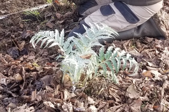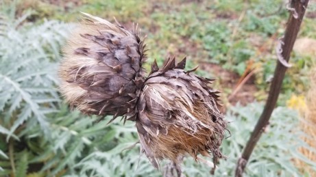 Quelques années en arrière, j’ai essayé de cultiver des artichauts et des cardons dans la prairie. Plutôt que de prospérer, ils ont presque tous été mangés par les campagnols. Je m’étais résignée à les considérer comme perdus.