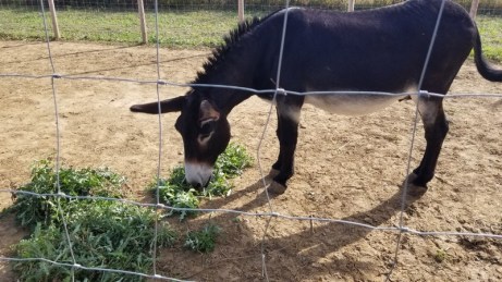 J’ai la satisfaction de le voir se régaler de chardons (qu’il faut quand même arracher et lui apporter). Et son propriétaire me laisse taper à volonté dans le tas de crottin qu’il produit.