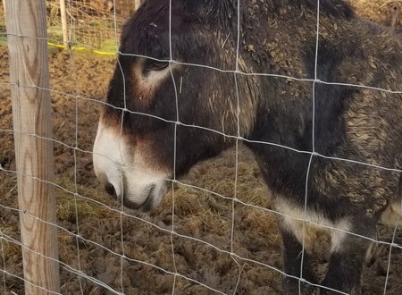 En 2023 j’ai vu arriver un âne dans une parcelle voisine des miennes. Anatole pour les uns, Voltaire pour les autres, le quadrupède fait désormais partie du paysage.