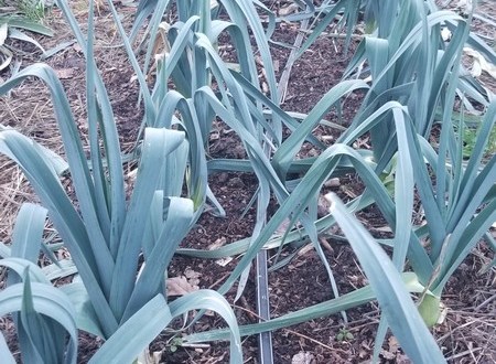 En juillet dernier, mes plants de poireaux faits maison étaient si petits qu’une première fournée est passée pour disparue à travers l’épaisseur de foin. J’ai renouvelé la plantation pour assurer la culture. Et j’ai vu à l’automne les doubles poireaux pousser péniblement.