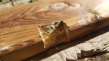 Au moment de commencer les travaux de menuiserie je me rends compte que le ciseau à bois a disparu lors du dernier cambriolage. Pas envie d’en racheter un, une vieille fiche de métal pourra le remplacer…