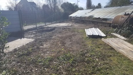 L’espace ainsi regagné donne une parfaite visibilité sur le côté de la serre à plants grignoté par l’incendie. Une sérieuse réparation s’impose !