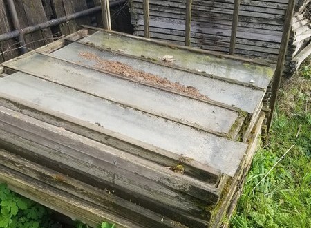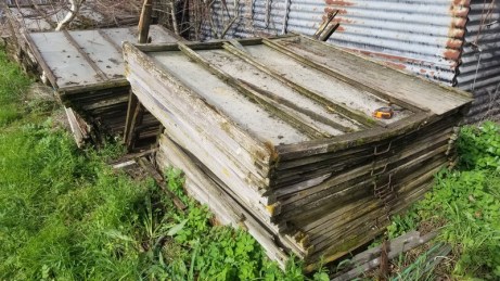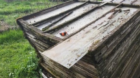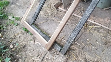 Heureusement, en matière de vitrages, j’ai hérité de trésors jusque là inutilisés. La pile de vieux châssis contient des dizaines de vitres.
