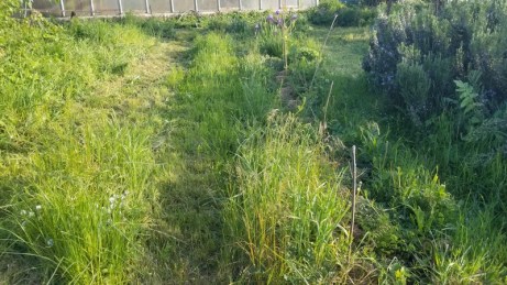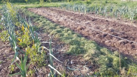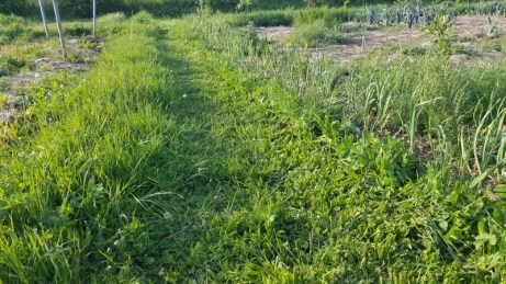 Chaque nouveau chemin fournit de précieux bacs d’herbe coupée. Ils viennent couvrir les planches de pommes de terre, les pieds d’arbres et autres surfaces en manque de matière organique.