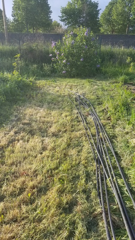C’est le moment de mettre en place le système d’irrigation, avant l’été, selon l’assolement de l’année. Les paquets de tuyaux non encore utilisés sont extirpés de la végétation avant chaque tour de tondeuse et posés en évidence sur les zones remises à plat.