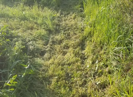 Chaque nouveau chemin fournit de précieux bacs d’herbe coupée. Ils viennent couvrir les planches de pommes de terre, les pieds d’arbres et autres surfaces en manque de matière organique.