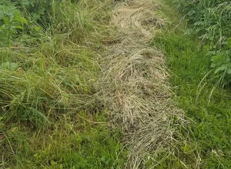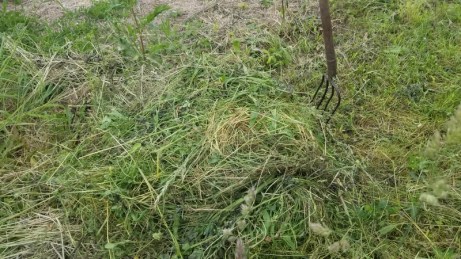Je ne dis pas que je ne sortirai pas la tondeuse de temps à autres. Mais je dois avouer que les herbes longues issues du fauchage sont un matériau bien supérieur au mâchis d’herbes que produit une tondeuse.