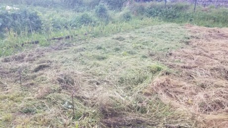 Écrasée avec les pieds et grossièrement hachée avec une houe, la végétation est couverte d’une fine couche d’herbe.