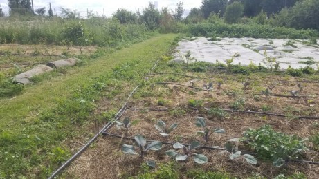 Les soins aux cultures continuent à être prenants en juin, sans parler de ce qui pousse sous les tunnels, regarnir les pommes-de-terre en paillage,