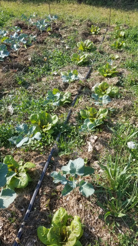 En été, et les laitues et les choux font régulièrement les frais de conditions climatiques trop rudes. Cette année cette série complantée semble pouvoir donner de beaux et bons résultats.