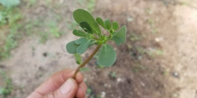 Du pourpier spontané, adventice typique des sols nus soumis à l’érosion. Le sol sableux de la serre lui convient parfaitement.