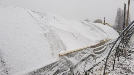 Le résultat n’a pas la note esthétique mais la neige ne rentre plus. Ouf ! Les mâches et épinards sont protégés à nouveau.