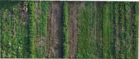 Côté prairie et verger, les tours de broyeur dessinent des motifs intrigants.