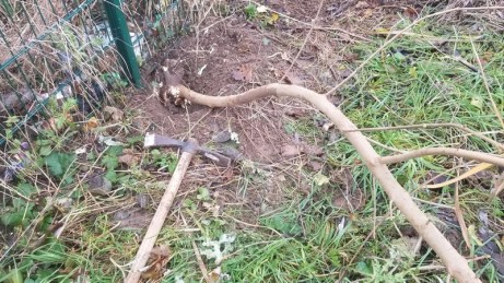Pas simple à déloger, il joue avec la structure. Mais la hâche-pioche finit par extirper la souche.