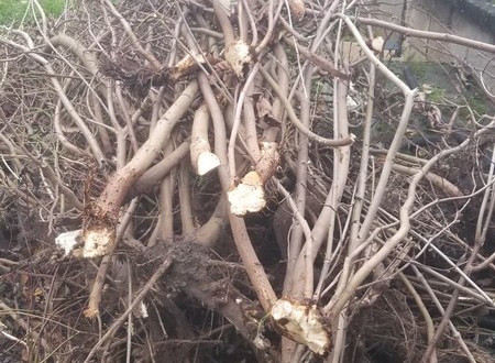Des brins d’érables, de cornouillers, de platane… Le tas grossit. Il va falloir songer à sortir le broyeur à branches.