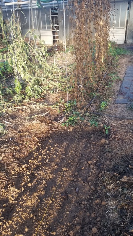 Et voilà, la planche est libérée… Reste à retirer les fils et affiner le lit de semence pour les petites graines de carottes.