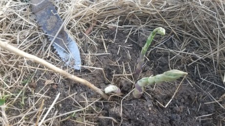 L’an dernier à la même période s’est déroulé un petit chantier inhabituel, la mise en place d’un carré d’asperges vertes. Dans les mois suivants, elles ont produit quelques petites tiges, qui ont séché à l’automne.