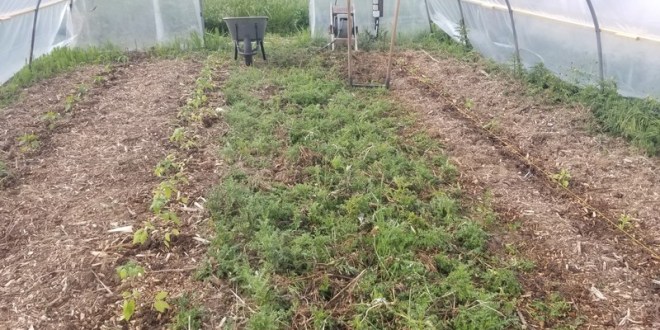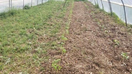 Le septième tunnel de l’alignement, remis en forme en février et recouvert ensuite d’un nouveau film plastique, reprend du service. Son sol avait connu une évolution spontanée depuis juin 2021, date de la tornade dévastatrice. Résultat, une solide végétation à base de chardon, panais, liseron et autres.