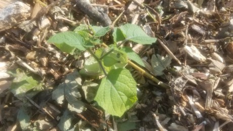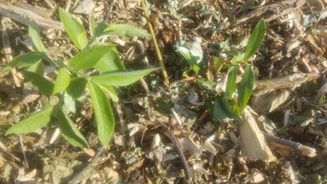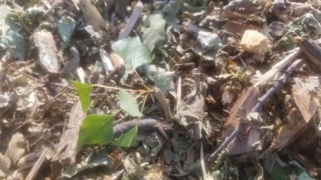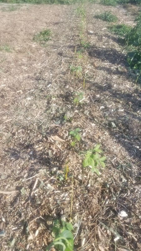 Et ils ont même reçu un petit cortège en accompagnement. La planche de destination faisant partie du schéma de syntropie, des petits arbres ont été intercalés avec les physalis. Ici, une bouture de peuplier.