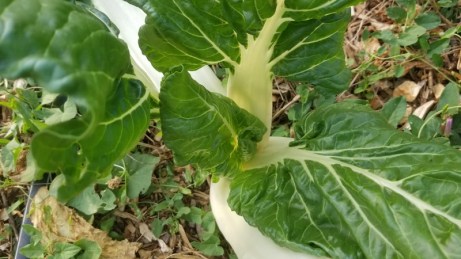 Ce sont les bettes qui bénéficient de cet accident. Elles étaient habituellement délaissées à partir du moment où les courgettes entraient sérieusement en production. Mais cette année je continue à les bichonner.