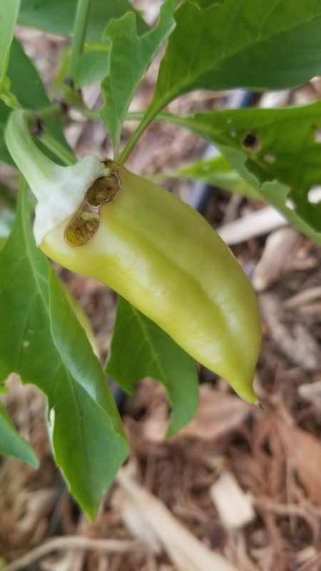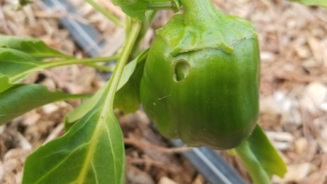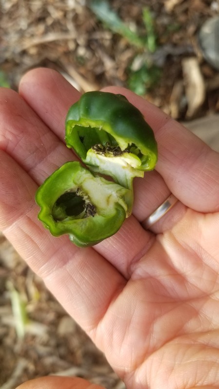 Si cette année les tomates sont particulièrement en forme, on ne peut pas en dire autant des poivrons. Les fruits sont tardifs, rares et petits.