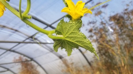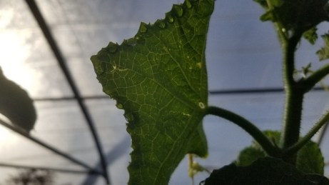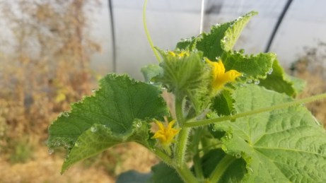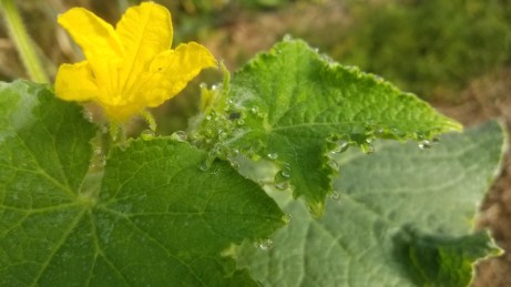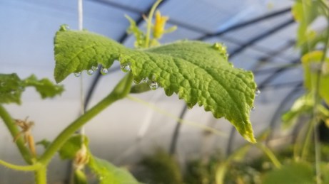 En journée, les gouttes sèchent, en laissant quelques auréoles blanches par cristallisation des minéraux présents dans la sève. Et les concombres continuent de se former doucement.