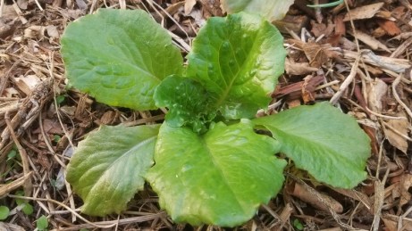 Les laitues aussi sont désherbées au passage – ici une feuille de chêne Strubelpeter.