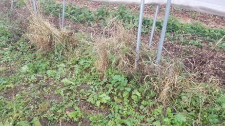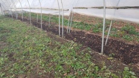 Avec le ralentissement du programme maraîcher il devient opportun de s’attaquer à ce problème. C’était l’objet de la visite active du week-end. Le chantier a mené à bien le désherbage complet du pied d’un tunnel et l’épandage d’une fine couche de broyat. Celle-ci n’empêchera pas les prédateurs d’attraper les rongeurs s’ils rouvrent une galerie obstruée.