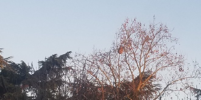 Les frelons avaient pris leurs habitudes. Voyez-vous l’énorme nid qu’ils ont constitué cette année au sommet du platane juste à côté des cèdres ? C’est une fois que les feuilles tombent que l’on voit où étaient les nids. Ils changent d’emplacement chaque année.