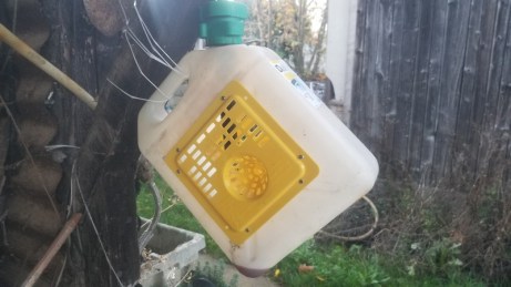 J’ai même fini par faire l’acquisition de grilles pour piéger les frelons. Ils n’ont pas été intéressés par l’appât bière-vin blanc-grenadine en ce début d’automne. Mais j’y reviendrai dès les début du mois de mars. Et j’espère bien capturer des reines et éviter l’implantation d’autant de nids l’an prochain à proximité des cultures.