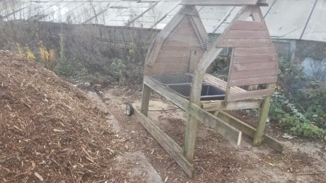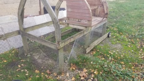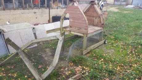 Pendant plusieurs années j’ai eu une, deux ou trois poules sur le terrain. Et j’avais construit un poulailler mobile pour les emmener gratter ici ou là. Mais il est arrivé plusieurs fois que les renards leur fasse un sort, à la faveur de grosses pluies ramollissant la terre. La dernière fois a été celle de trop.